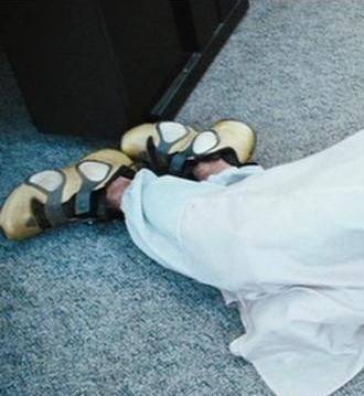At 49:13 on the DVD, notice that, as the crew eavesdrops on